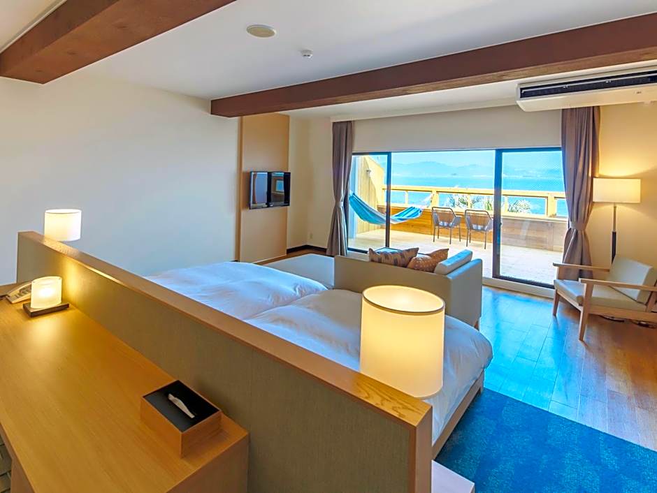 Guest amenities include free private parking, free Wi-Fi, and a free shuttle service, with notable features such as a restaurant, terrace, garden, and balcony. Inside, amenities include a 24-hour front desk, air conditioning, kitchenette, bathtub, free toiletries, and a hot spring bath (free). For leisure, snorkeling (extra charges), a private beach area (extra charges), spa (extra charges), sauna (extra charges), massage (extra charges), and meeting/banquet facilities (extra charges) are available, along with kids' club and kids' meals (extra charges).